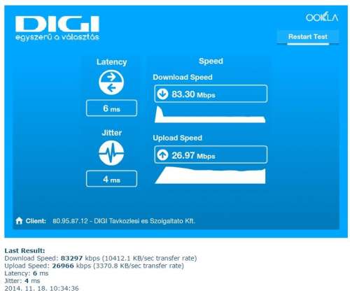 Nem lett gyorsabb, ezért még tegnap telefonáltam DIGI-nek, 10perc várakozás után se sikerült ügyintézőt kapcsolni, ezért letettem és emailt írtam nekik, amire még nem válaszoltak. (gáz amúgy, hogy a saját vezetékes vonalukról a saját zöld számukért percdíjat számolnak fel, ezért tettem le...)