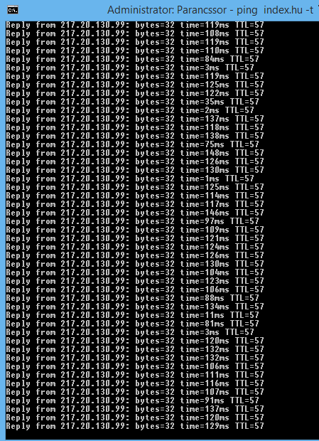 Nyomj egy tracert index.hu parancsot, hogy hol időzik sokat. Nálam ilyen:traceroute to index.hu (217.20.130.99), 30 hops max, 60 byte packets