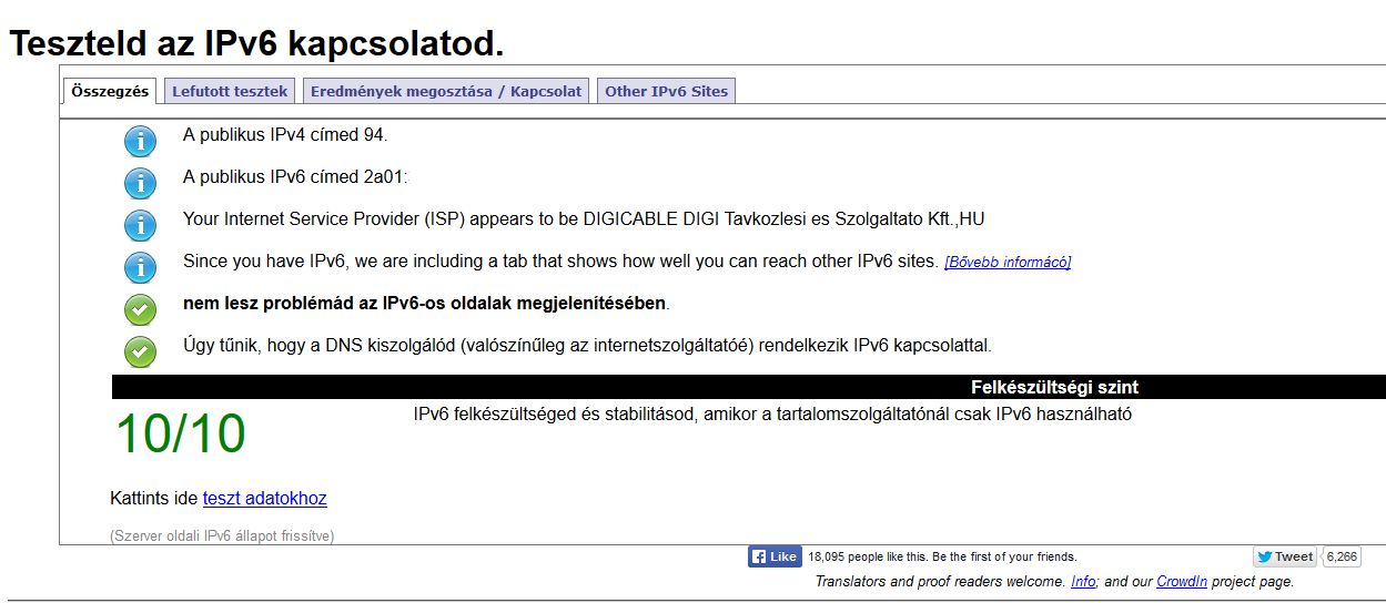 Szóval nem tudom mire vár a Digi és mi az oka a halasztgatásnak, mert az ONT-k már kezelik a IPv6-os címezést, illetve a számítógépek is képesek már kezelni XP-től kezdve trükközés nélkül, illetve a routerek is tudják már kezelni (na jó a régebbi routerek szoftverével gond lehet), de szerintem már nem kellene halasztgatni főleg azokon a területeken amiket most kapcsolgatnak be optikán. -