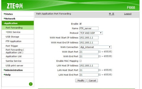Kínlódok, hogy ZTE F668-ra, közvetlenül rádugott külső vinyó-ból FTP szervert csináljak, ami külső hálózatról is elérhető.
