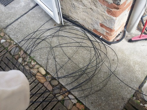 ezt most ki kell húzni, levinni az aljáig, aztán behúzni egy csőbe. még nem is ássa le a földbe, de akkor is legyen legalább csőben...
