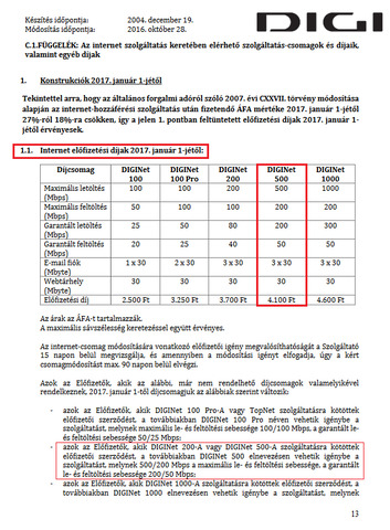 még egy téma, ahogy olvasom ászf-ben hogy minden 200-as január 1-től 500-as lesz, s vajon a régi áron fogják számlázni nekik a d500-at vagy mint mindenkinek 4.100,- ért?