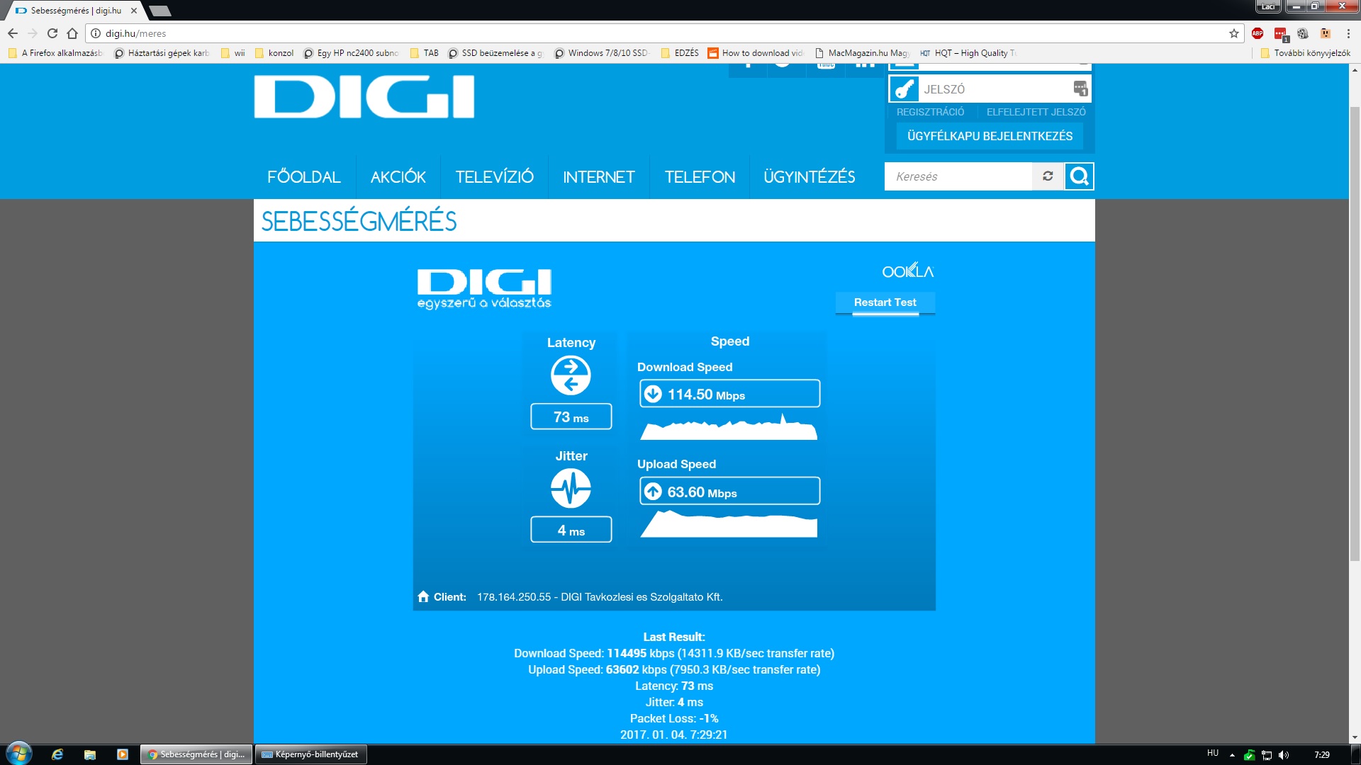 Mindjárt hívom őket, és panaszt teszek, bár elhajtanak majd, hogy a garantált megvan, fogjam be. De biztos nem váltok csomagot csak azért, hogy majd a több pénzért megkapjam azt, amit korábban ezzel a csomaggal. DIGI100 100/50 és rendre ~50 / ~40 a valóság. Röhej. Egész évben 80-90 / 40-60 volt. Decembertől van ez a szánalom... -
