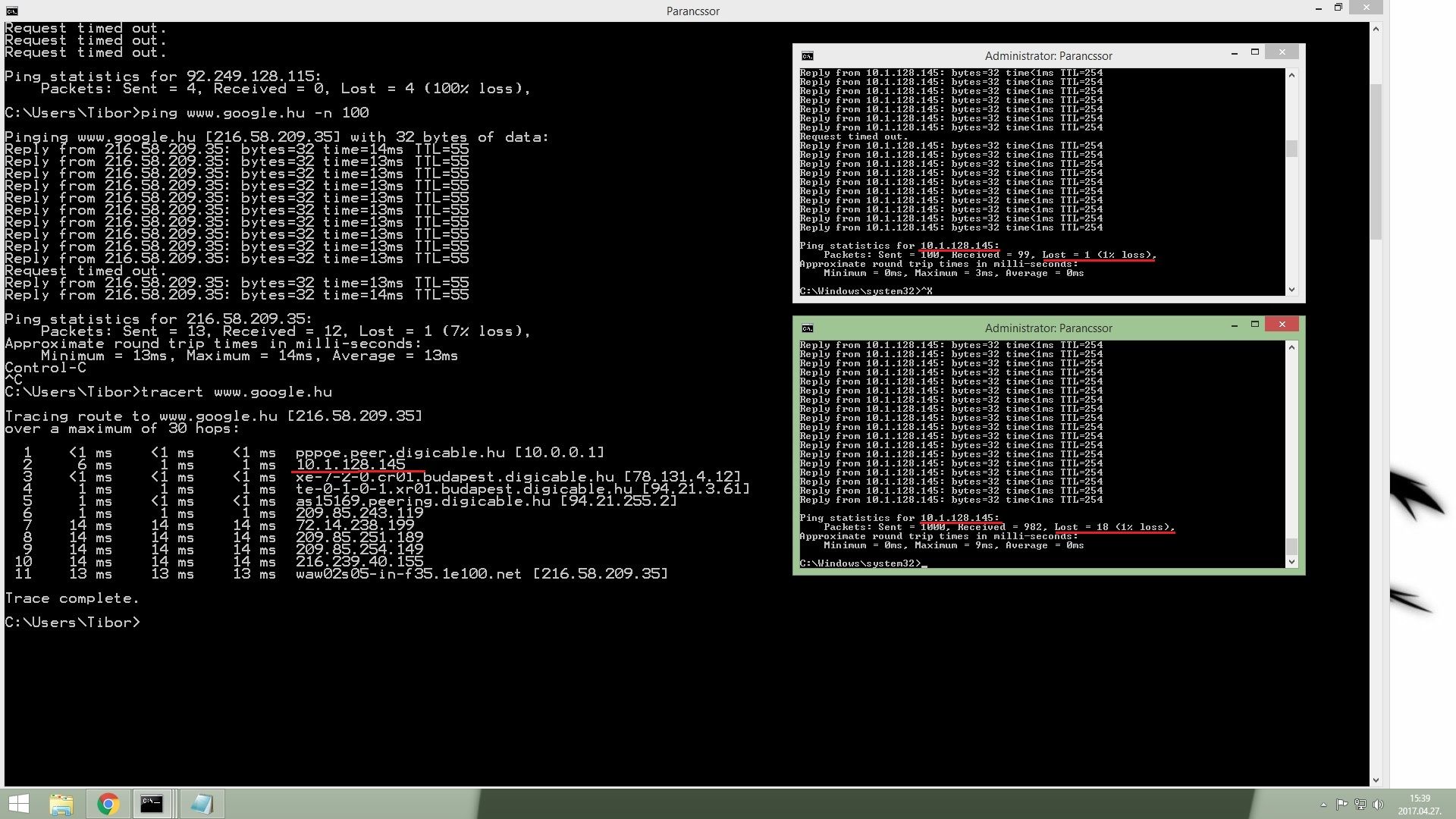 Szóval ők nem észlelnek hibát a szolgáltatásban akkor ha több gépről is tesztelve, közvetlenül a bejövő kábelre csatlakozva, mérek a digi.hu-ra és úgy is adatvesztésem van. Ez most komoly? Ha valaki tudna adni tippet, hogy ilyenkor mit lehet tenni azt megköszönném.