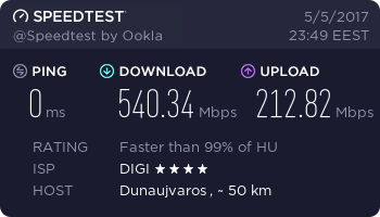 Folyamatosan nálam keresik a hiba okát, de amikor egy Lenovo Y700-as gamerbook, egy router, egy HP Elitebook Gigabit porttal mind-mind ugyanazt mérik, akkor nem gondolnám, hogy nálam van a hiba.