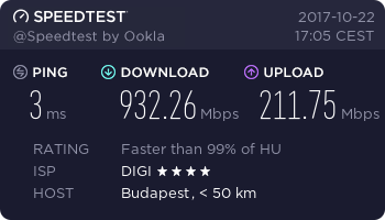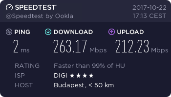 Nem, azon is ugyan ez volt. A DIGI speedtestjével is megnéztük és az persze jó volt, de az jó az én gépemen is. Igazából tényleg megnéztem már minden lehetséges kombinációban, minden eszközön, többféle oprendszerrel, routerrel, router nélkül stb stb stb és nem jó.. Már a bekötés napján se volt jó..