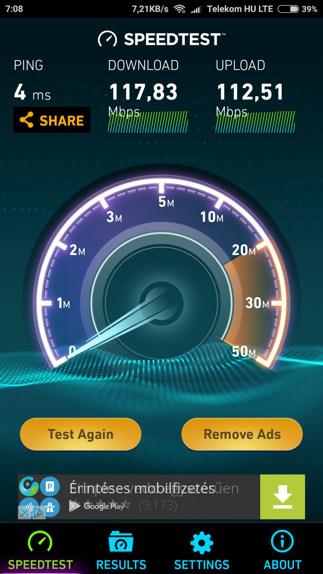 a letöltés 500-700 Mbps között mozog (nekem bőven elég), de az up, ami 2 évig 90-100 Mbps volt, most konstansan be lett "szögelve" 50 Mbps-ra bármikor is nézem...és ez nagyon fájó pont nekem, hogy az up feleződött, akkor is, ha pont annyi, mint amennyit garantálnak.