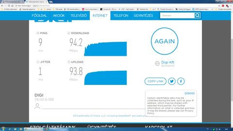 Már nem létezik 100/50 net a Diginél, a leglassabb 100/100-as, és akinek 100/50 volt, annak emeltek 100/100-ra,