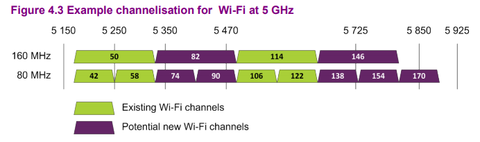 Na igen. Örömteli lenne, ha nálunk is megnyílna legalább a felső 80megás blokk. Terv egyébként van rá, hogy további blokkok nyílnak meg, az angolok például már javában agyalnak nem csak a sávszélesség de a "csak beltéri" felhasználás és egyes sávrészek durva teljesítménykorlátjának a feloldásán. Szerény véleményem a témában az, hogy a WRC-19 (2019) előtt ebből nem lesz semmi, tehát még két évet várni kell erre, de az előkészítő munka folyik, és szándék is van erre. A briteké például így néz ki, és ez harmonizál az európai törekvésekkel is: