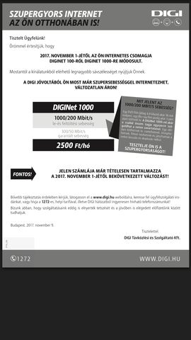 Budapest II. kerületi utcánk most jelent meg a Digi listájában, meg szórólap is érkezett a kapcsolattartóval. Erre vártam, mert a Telekomos net nem csak drága, de sz*r. is (eddig az volt nálunk)