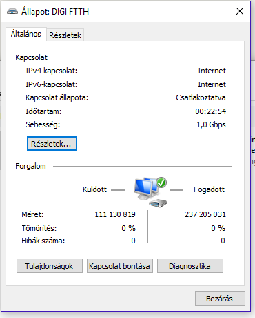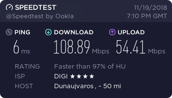 Ma reggeli sebességem, ezekszerint átállítottak gigabitre: