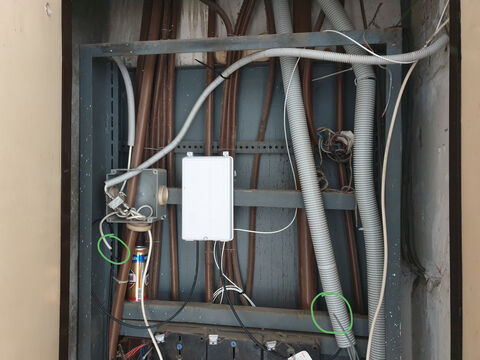 Látszik, hol van elcsípve a régi utp és a coax, ott az új doboz, amibe bal oldalt alul bemegy a fő optika (gondolom), majd megy tovább felfelé a jobb oldali másik fő kanóc, és megy ki belőle a vékony fehér, ami megy be a lakásba hozzám.