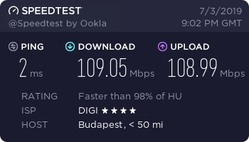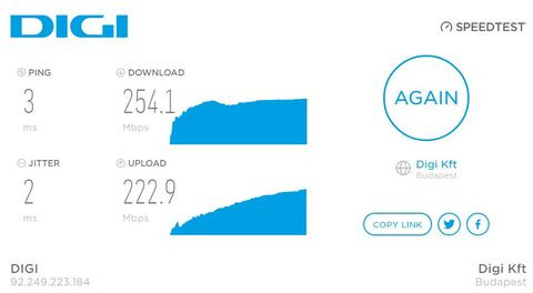 üdv ma kötötték be nálunk a digi 1000-ret (amúgy 2015 novemberében volt megrendelve) és jelen állapotban a fel és letöltés csak ennyi gondolom kilehetne hozni többet is belőle nem? (amúgy cat5e kábelek vannak) -