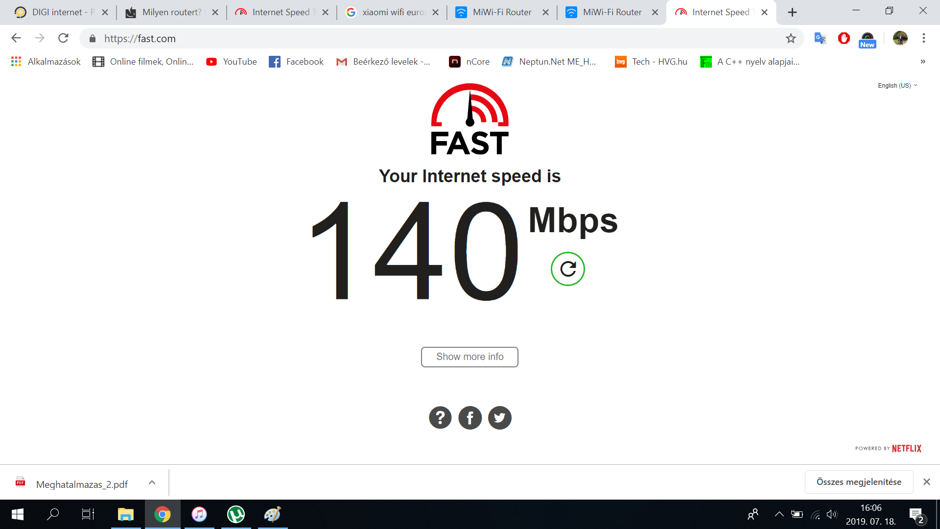 Olyan problémám lenne, hogy az elmúlt időszakban azt produkálja, hogy a számítógép elindítását követően tudja az elvárható 600/300 Mbps sebességet (saját Digis oldalon mért)