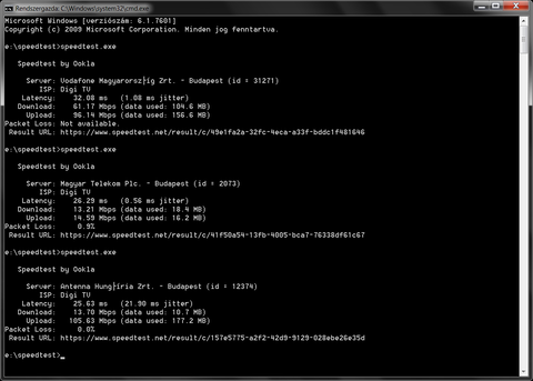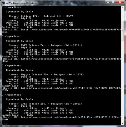 Azt figyeltem meg, hogy a különböző mérési szerverek között is óriási különbség van. Az egyiken 16/200-at mérten, rögtön utána egy másikon 417/255-öt.