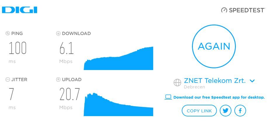 Ahogy nézem inkább az szerverek vannak terhelve, antenna hungárián 60/250, míg Telenor szerverén mérve 450/43