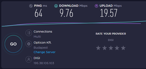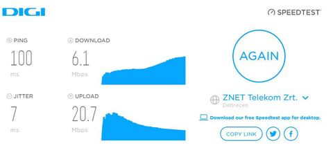 DIGINET 1000 FTTH , jelenleg 25ms ping 70/30 Mbit