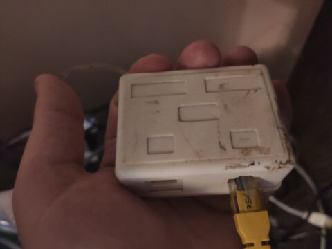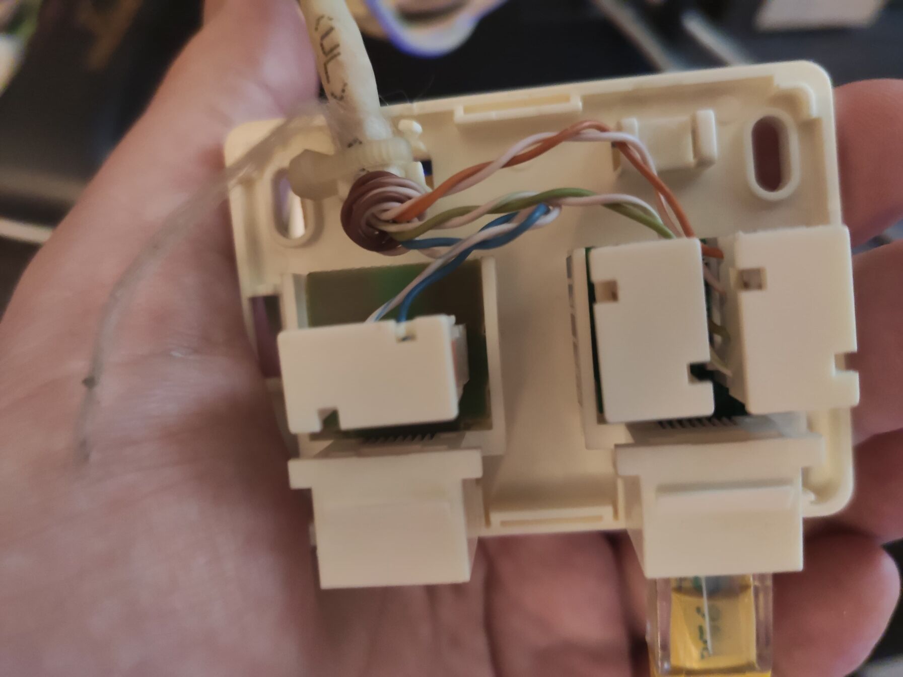 A kép jobb oldalán látható kábelt (beköltözéskör nem tudta a felújító szaki mi az a kábel és elvágta, azért néz ki így) lehúztam a toldalékról és egy CAT 5e-s kábellel követlenül összekötöttem a géppel.