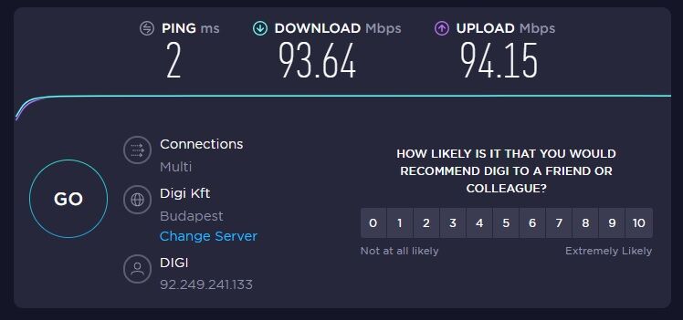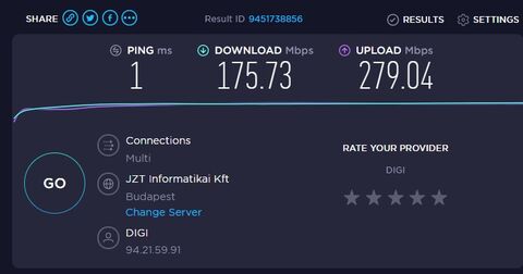 Évekig 100 MBites netem volt, amit a hűségidő lejárta után 500 Mbitre (DIGINet 500 (FTTB)) váltottunk.