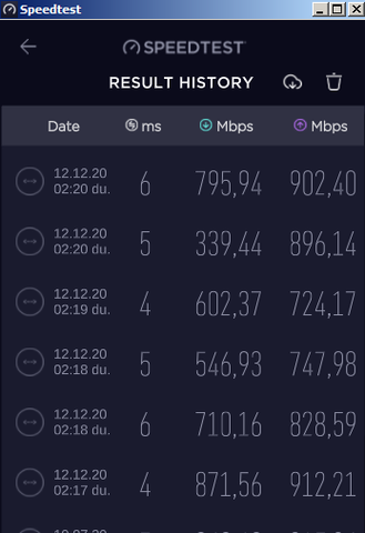 Budapest, XVII. kerületben többnyire már megvan a 800+ Mbps, néha kicsit bezuhan, de bőven használható. Érzésre most az oldalak sem problémáznak. Felfelé viszont atomstabil a 325 Mbps.