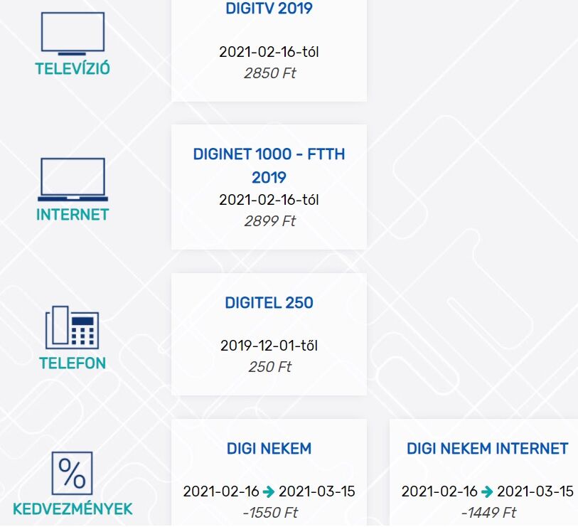Ma rendeltem tv és FTTH netet. A weboldalon bekötési és belépési díjról szóló infók elolvasását kellett egy kipipálással jeleznem. Hát sehol nincs értelmesen leírva hogy mikor kérnek bekötési díjat. Belépési díj 500 Ft. A bekötési 12000 Ft. Na ne már! Akkor megyek a fliphez, ott nincs ilyen és ezt normálisan le is irják. Ha a digi féle ÁSZF és melléklet infó tartalmát erről a díjról meglátja egy hatóság, akkor ismét meg lesznek büntetve. És ha tv és net is lesz akkor 2x 12e Ft