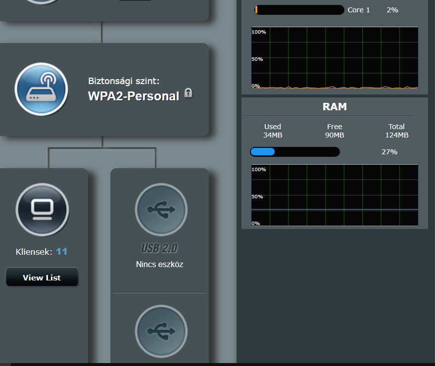 Ilyen a menü külalakra, de nekem ott csak a CPU és RAM kihasználtságot mutatja, alatta nincs az "Ethernet ports", mint nálad. Kép: [kép] -