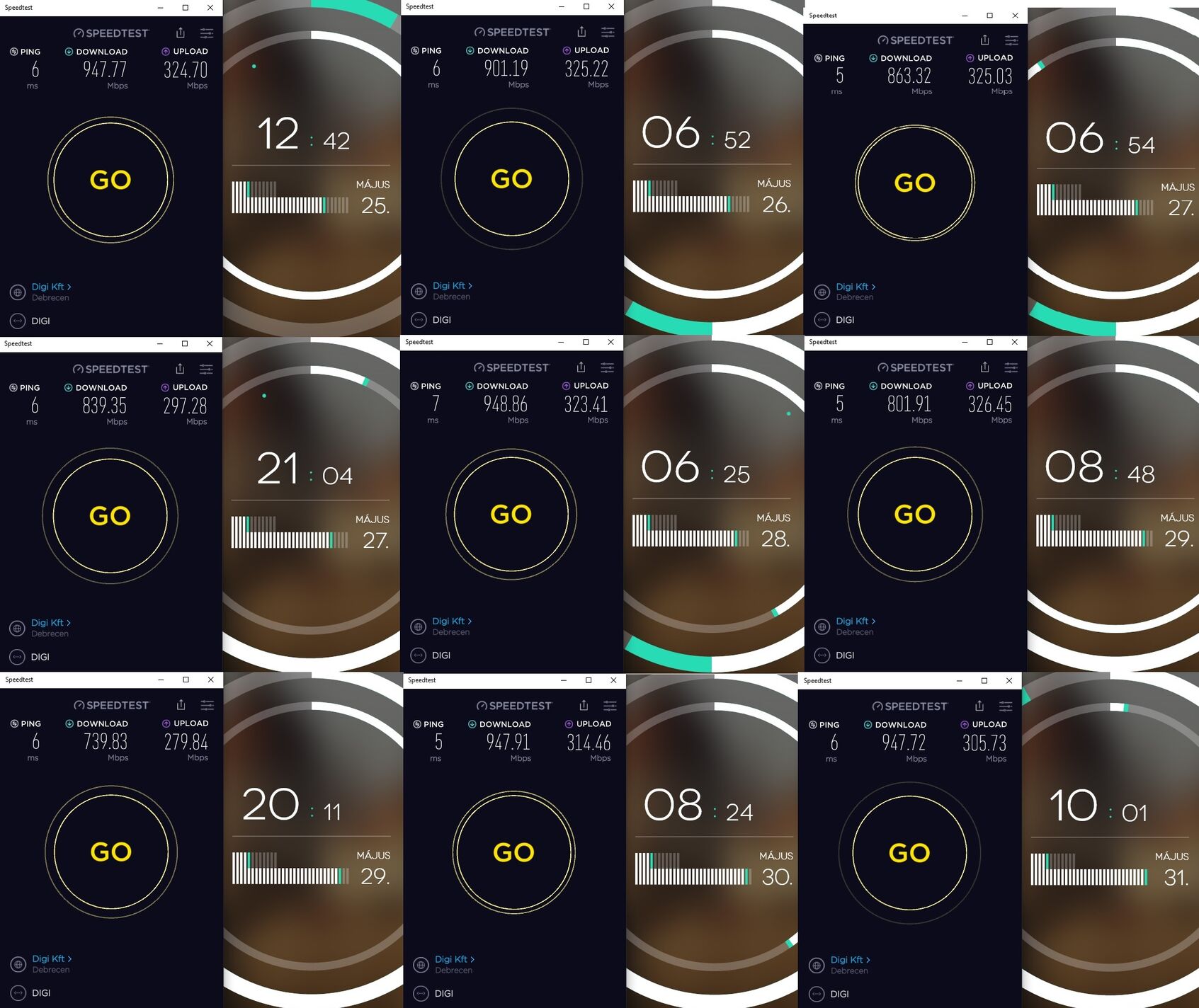 Az 1000-es Telekom sebességéről én sok rosszat nem tudok mondani. Nekem egyelőre úgy tűnik ugyanolyan valószínűséggel hozz 900 Mbps felett, mint a DIGI. Ráadásképp az ahhoz adott HGW iszonyatosan erős WiFi-vel van ellátva.