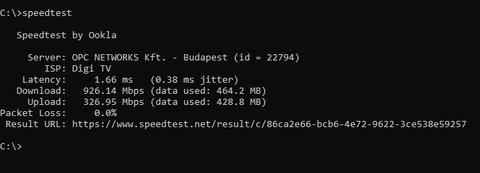 átmentem szélessáv.net-re ahol nincs reklám, ugyanaz a laptop egyből 940-et mért böngészőben. Sajnos win8 volt rajta így a microsoft store hibát írt de legalább láttam hogy szépen megy csutkán a saját routerrel kábelen. -