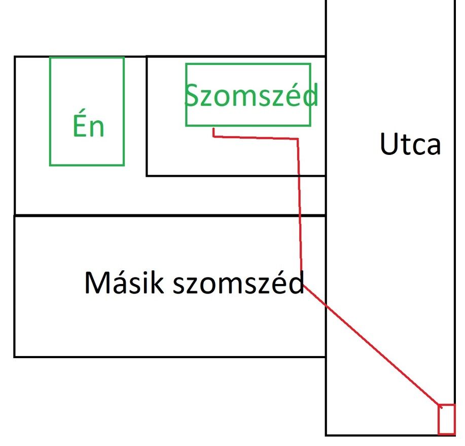 Zölddel jelöltem a telken szereplő ingatlanokat, piros szín az akna, illetve optika nyomvonala.Ha valakinek van Digi-s ismerőse, ránézhetne, mert nekem nem ésszerű a magyarázat, illetve a nyomvonal is hagy kívánnivalót maga után.