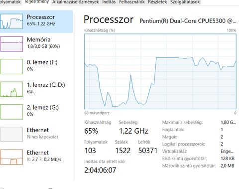 De az is tény, hogy az Ookla speed test során a CPU-m kifekszik 70%on, mint ha ez lenne a korlát: