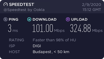 Most kábelen ennyi jön a Huawei 1-es portból, ami a gigabites elvileg. Illetve CAT6-os kábelem van.