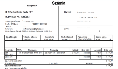 1000-res internet: 3.100 Ft + TV 3.100 Ft = 6.200 Ft / hó