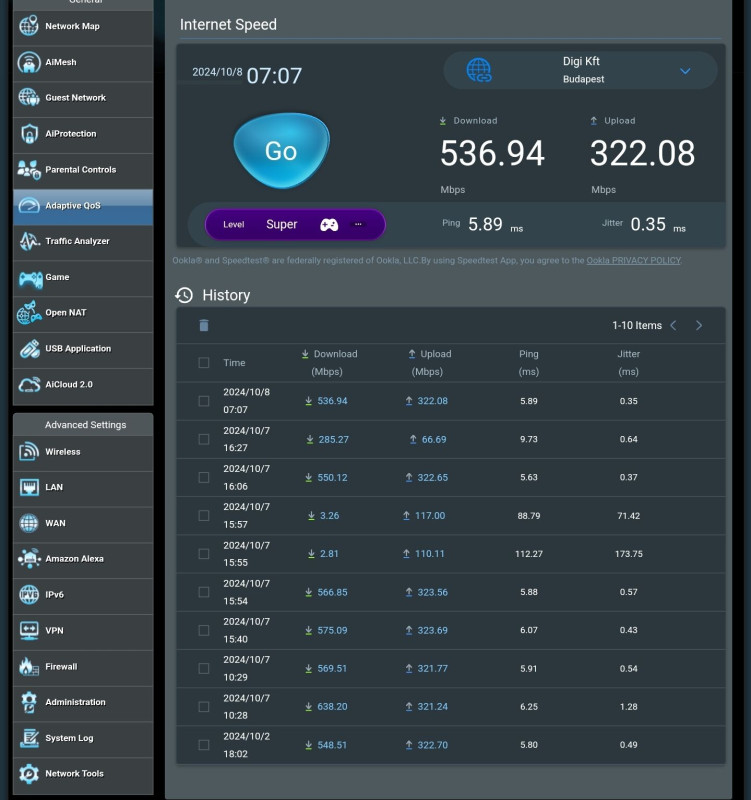 Routeren a Speedtest továbbra sem adja ki a matekot