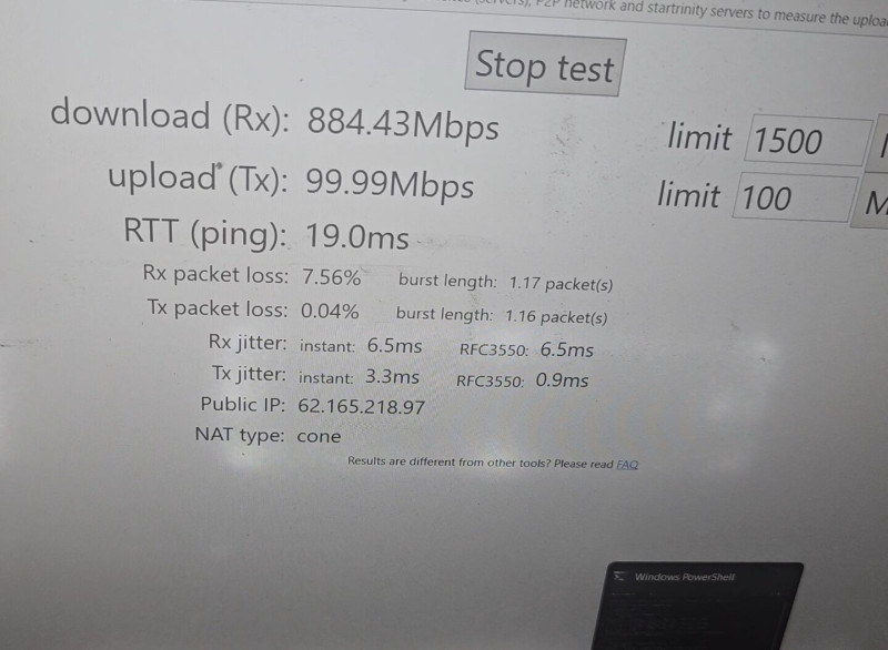 QOS, egyenesen laptopra kötötöttem a modemet. Az általad ajánlott Continous Speed Test programmal, a Speedtest CLI-vel meg elértem a letöltés ~80-90%-át, lehet látni a QOS mentesség jótékony hatását a szélessáv.net mérőboxból nézve