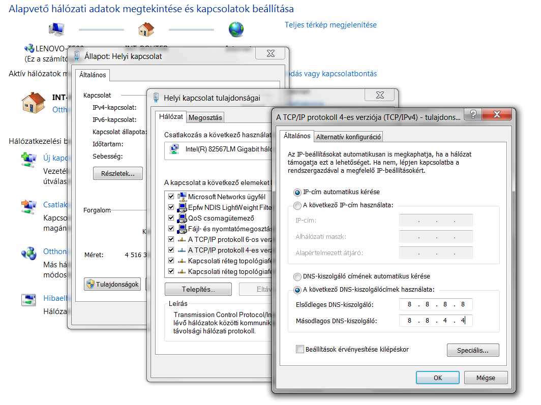 Ha közvetlenül LAN-al PC-vel kapcsolódsz, akkor az IPv4 tulajdonságoknál. [kép]