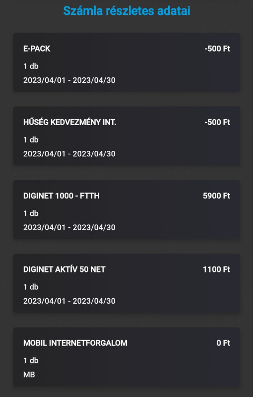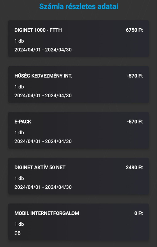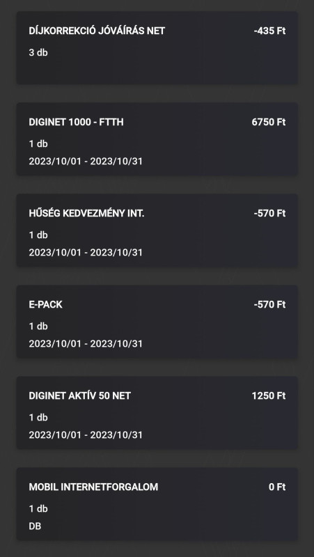 Nekem a szerződés módosításnál ott vannak a személyes adataim és alatta kisebb betűmérettel részletezve a csomag és tartalma, ott szerepel, hogy fél évig felébe kerül a net és a 7. hónaptól teljes árat kell fizetnem, összegekkel együtt, az is szerepel, hogy mennyi az előfizetés tartalma alatti kedvezmény...