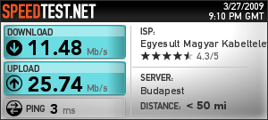 Budapesten VI kerületben, TP-Link TL-WR542G mögött ülve mértem a fenti sebességet. StarNet csomagra fizettem elő, a mérést több különböző napszakban is megismételtem. A letöltési sebesség nem soha megy 11 Mbit fölé, a feltöltési viszont ennek akár másfélszerese is lehet nálam!