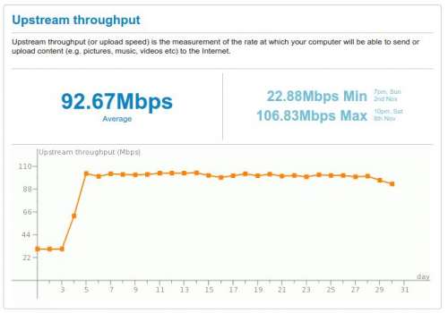 Speedtest feltoltes: 100-107 Mbps