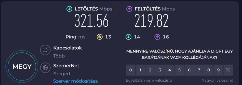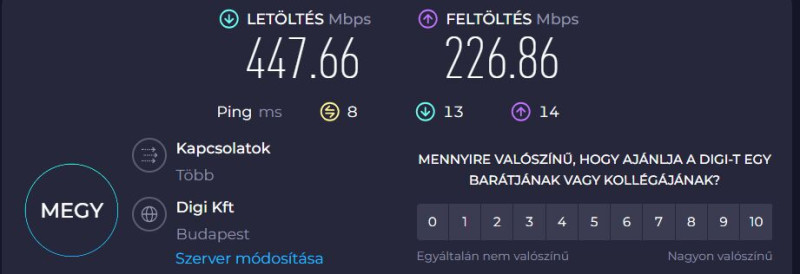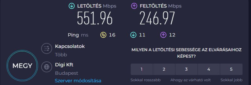Bárhogy mérem, akár laptopon ( Intel(R) Wi-Fi 6 AX200 160MHz kártya van a gépben) akár telefonon (S24 ultra) mérve szinte mindíg egyforma sebességet kapok.