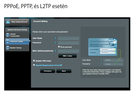 2. Nem vagyok túl játatos a router beállításban, így hasznáknná az ASUS "Gyours Internet beállitást... ez "elintéz mindent" vagy be kell írnom valamit az allábbi lapon: