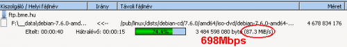 Ehhez nem csak a szoftveres tűzfalat kapcsoltam le az XP-ben, de a vírusvédelmet is ki kellett lőni, az 890-nél limitálta a sebességet. No meg van egy 5 portos gigabites tplink switch is, azt is ki kellett hagyni, bár a switchbe a helyi strukturált hálózaton, azaz 2 toldáson keresztül jut a kábel, de hát az én készítettem, az hibátlan. A kísérletet 30x ismételtem meg, ebből kb. 10x volt 930 felett, de 890 alá sosem ment. Pedig elvileg csúcsidőszak van, direkt próbáltam most péntek este, amikor elég nagy a forgalom...