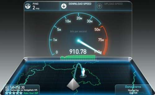 A hálózaton belül még vannak tartalékok, ott a DIGI szerverét használva ez is kihozható volt. Ez már közeledik a router gyártó által megadott 940Mbps-os elvi maximális sebességéhez.