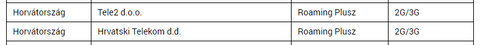 A digi roaming partner lista táblázata szerint Horvátországban (két szolgáltató esetében is) Roaming Plusz van.