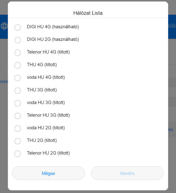 Mondjuk a 2G hálózatra nem akartam csatlakozni. Kiválasztottam, hogy "Csak 4G" és így kerestem manuálisan hálózatokat. Megnézem, hogy a 2G-re felmegy-e, de ott meg net nem lesz.