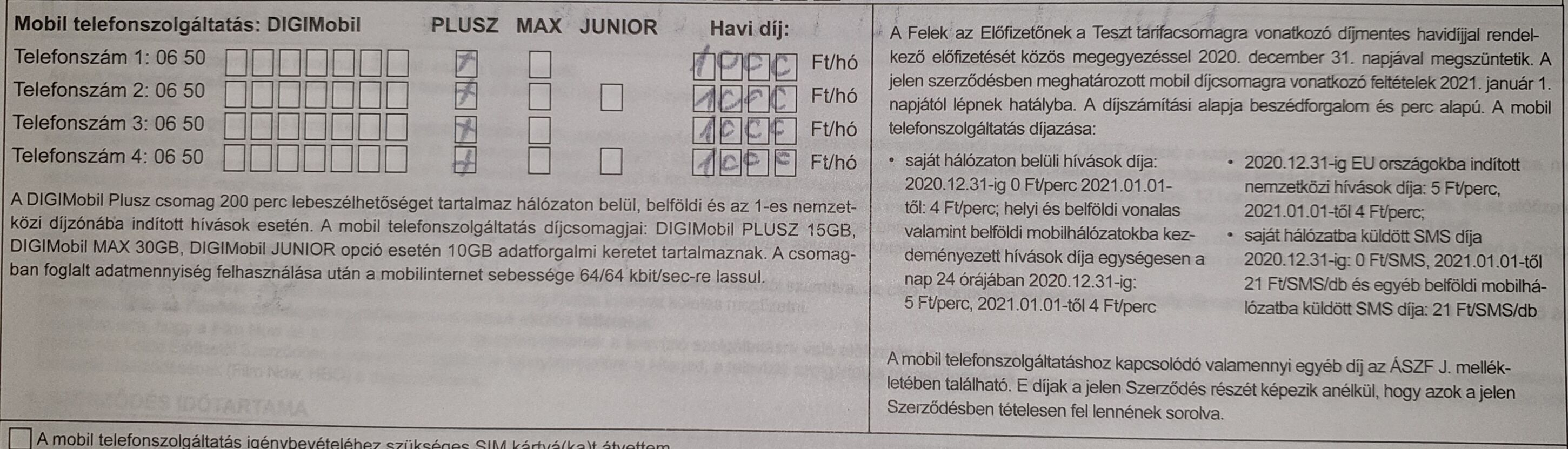● A DIGIMobil Junior a jelenlegi 1.250 Ft-os listaárról és 910 Ft-os kedvezményes árról 1.990 Ft/hó-ra módosul.