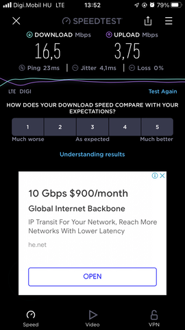 Telefonos netezésre megfelelő a sebessége. Lefedettség: https://digi.hu/mobil/lefedettseg