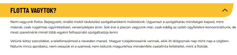 Nem. A flotta leegyszerűsítve itt csak közvetít kiad egy engedélyező nyilatkozatot. Onnatól fogva Yetteles előfizető lehetsz speciális tarifával..Bármilyen hihetetlen ez ilyen egyszerű.