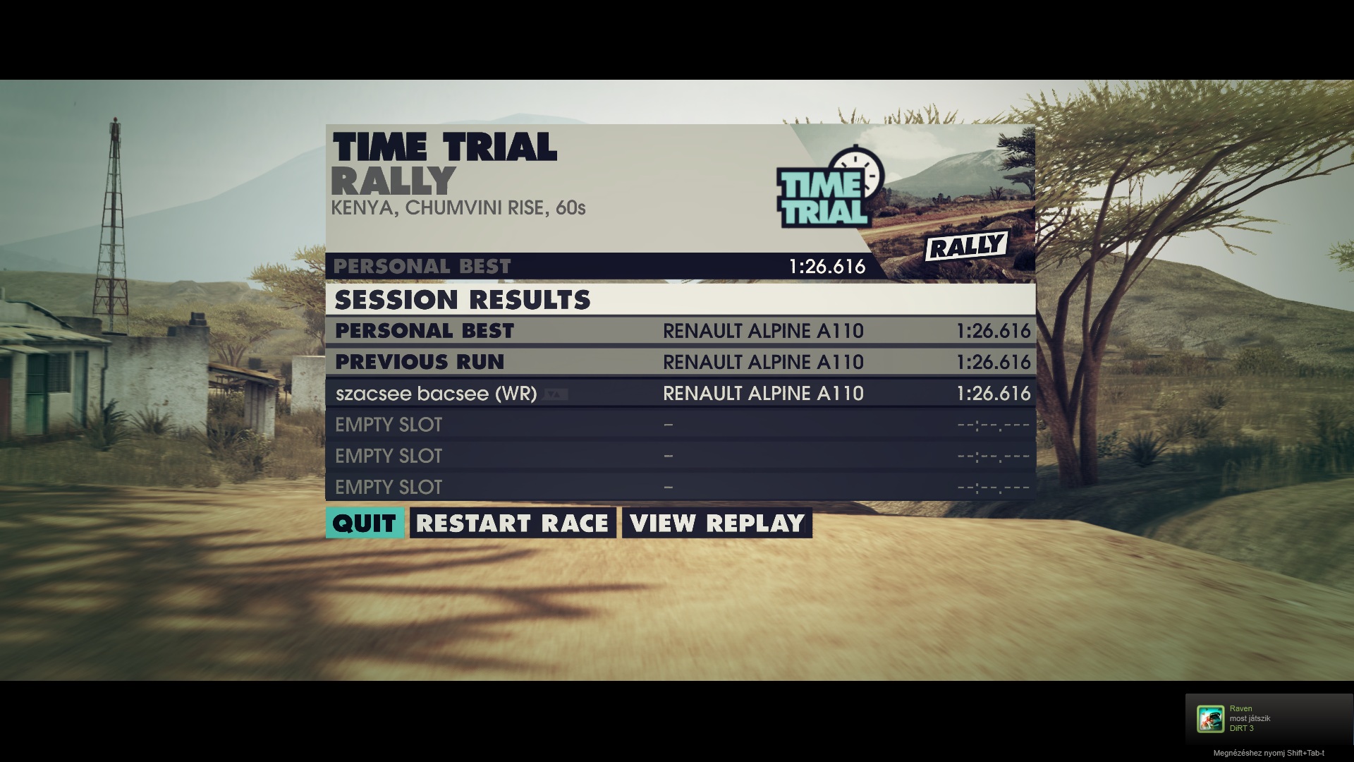 Lila csíkozós visszajátszós ütközéses fícsörre visszatérve.... mintha Dirt2-ben is lett volna hasonló nem? Arra gondolok, mikor a visszajátszás közben a kép kicsit megakadt ill szemcsésre átváltozott egy pillanat alatt és egy olyan hang követte, mintha a hangkazettá visszacsévélnék és megint play-t nyomnának... lehet kicsit furán fogalmaztam, de így maradt meg az emlékeimben.