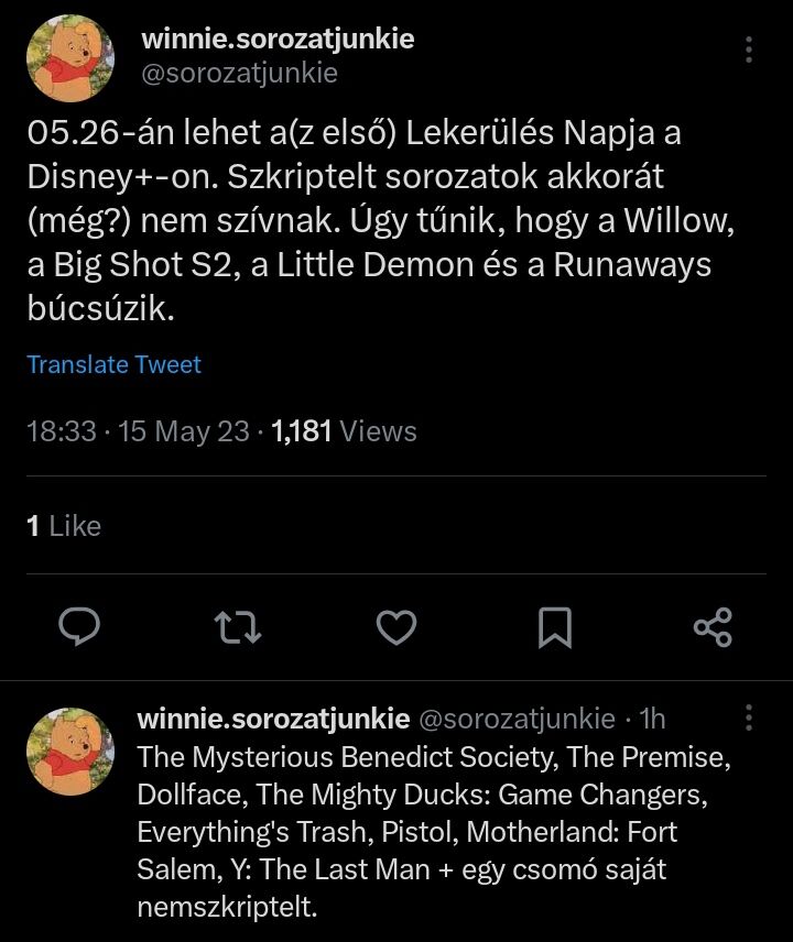 [forrás főleg: Disney aims for more profits at Disney+ with more ads, less content, higher fees]Szerk: Nem válasz akart lenni, bocs.