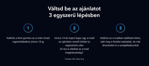 *Megtakarítás 12 hónap havi díjas árához képest (2490 Ft/hó az induláskor). Regisztrálj előzetesen június 14-ig, és elküldjük e-mailben ajánlatunkat szolgáltatásunk indulásának napján. Az ajánlat június 26-ig érvényes. Előfizetésed, egészen a törlésig, az aktuális éves árat alapul véve ismételt jelleggel meg fog újulni.
